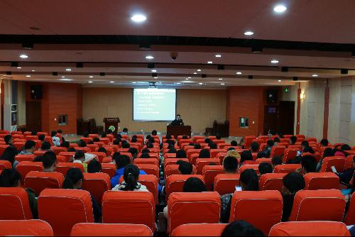 10月27日晚,由团委主办、外语系团工委承办的大学英语学习系列报告之“英语学习与雅思考试”在北校区绣山活动中心北报告厅顺利举办。报告由外语系张鹏老师主讲,旨在提高同学们对雅思考试的认识,激发同学们英语学习的热情。外语系团工委书记张琦、辅导员刘方以及来自全校各院系的100余名同学参加了本次讲座。