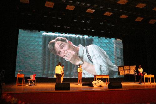 中场互动环节中,一部部纪念中国人民抗日战争及世界反法西斯战争胜利七十周年为主题的经典影片片段在大屏幕上播放,尤其是中国电影《南京!南京!》,让同学们仿佛置身于那个战火纷飞的年代,同学们竞相抢答,现场氛围再度升温。同时,活动中对昨日发生的巴黎爆炸案最新动态的关注更表现了广大青年反对暴力、珍爱和平的坚定立场。最终,第十组《乱世佳人》的表演凭借其精确的选材,精湛的口语摘得一等奖桂冠。至此,从初赛、复赛到决赛,持续长达一个月时间的配音大赛正式落下了帷幕。