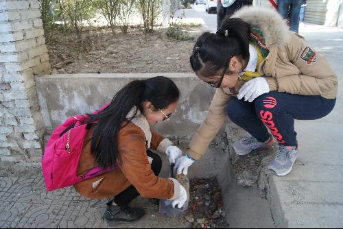 志愿者清理社区内卫生“死角”