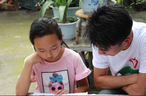 下午的支教活动,有幸在小朋友们面前当了一次老师,这也是我人生第一次体验身为人师的感觉。队友们有的辅导英语,有的手把手教他们练字,宁静的小院里,我想我们可以给他们播下希望。