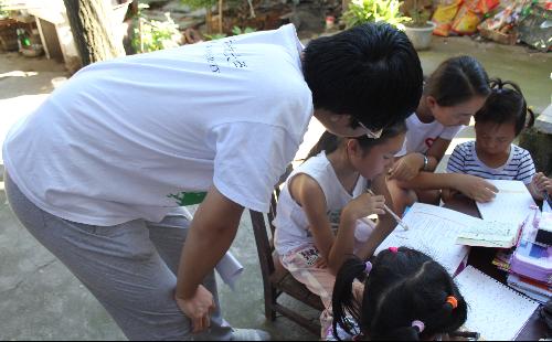 下午聚集了几个小朋友来到了住处,我们给他们进行单独的辅导。我负责的对象是一个只有三岁的小女孩。相对于其他几个三四年级的孩子,三岁可能还什么都不懂,甚至她连1至10的数字都不能认全,所以我只能从头开始一点一点地教她数字和拼音。小丫头带了一本硬笔练习模具来,包括数字,拼音,汉字。不过我觉得小朋友刚开始学习应该只是像画画一样学写数字和拼音,而字帖上的印刷体并不适合小朋友学习,于是我又手把手的教她写字。在学习完后,小丫头还特意给我唱了一首歌。我们一个下午从陌生到熟悉,这种感觉很奇妙。孩子们总是那么天真可爱,尤其当我听到她的歌声时,感觉这些天在乡下受的苦啊什么的都是值得的。