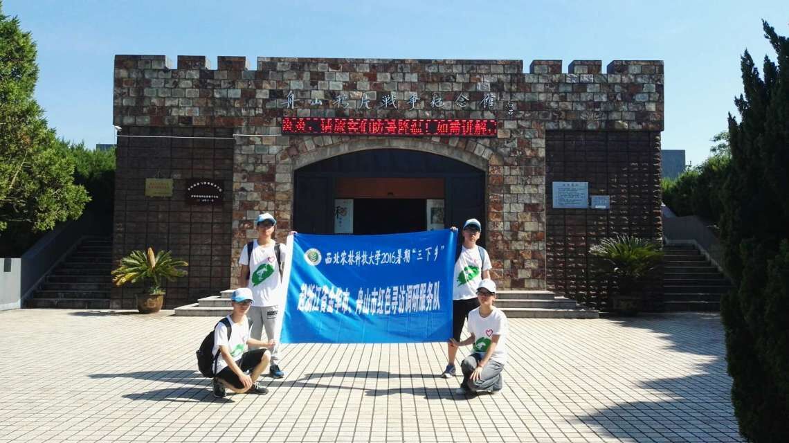 2016年8月1日,西北农林科技大学2016暑期三下乡——“赴浙江省金华市、舟山市红色寻访调研服务队”在舟山鸦片战争遗址公园展开了第二天活动。在八一建军节这样一个伟大的日子里,我们的红色寻访显得更加意义非凡。队员们参观了傲骨亭、鸦片战争纪念馆、三忠祠。通过一天的寻访,并结合前一天所了解的内容,队员们更加深入了解了抗英先烈们的壮烈事迹,对他们也更加尊敬。