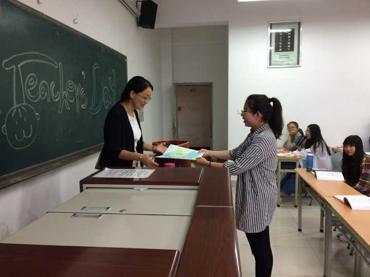 虽然只有黑板上小小的几个字母,但却溢满了我们真心的祝福。Happy Teachers' Day!当我们站起身来向您问好时您惊喜的笑容是对我们最好的回应。