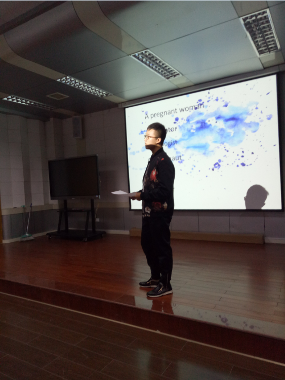 本次英语角活动分为两个环节。第一个环节,“无领导”小组讨论。一艘船在海上遇到了风暴,仅有六个人存活下来,现在有一个热气球,只能选择一个人生存下去,从所给的角色中讨论决定谁活下来。同学们讨论的热火朝天。