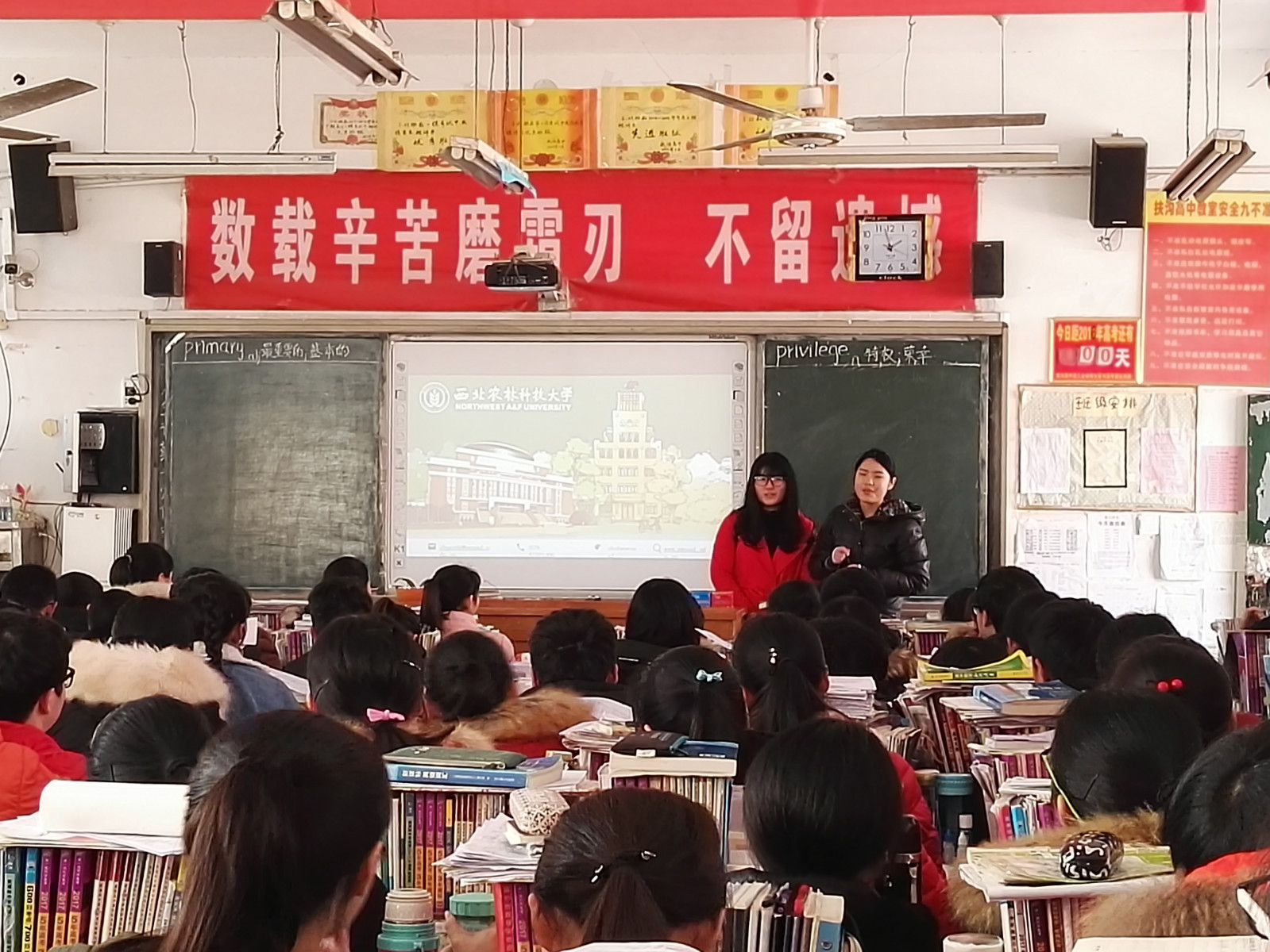 10日下午,回访小队分别为高三共6个班级开展了宣讲会。首先,队员为同学们播放宣传片《西农——一所画中的大学》,同时发放宣传资料,激起在场师生广泛兴趣,让大家对西农有了初步认识。紧接着,团队结合PPT介绍了西农的校史、历年录取分数、特色专业、奖学金政策、考研保研情况、就业情况等细则,全方位、立体化地向学弟学妹展现出与众不同的西农。最后,全体队员就应试技巧、复习方法以及心态调整表达了自己的看法,并悉数回答应届考生们提出的疑问,得到了同学们的热切回应。