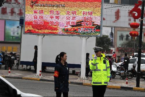 为响应校团委在全校团员青年中开展的“学习习近平总书记讲话,做合格共青团员”教育实践活动,发挥青年团员志愿服务的精神,契合“学雷锋月”主题精神,以及在市民中宣传普及交通法律法规。3月18日,外语系团工委社会实践部组织选派多名学生志愿者在杨凌示范区康乐路与西农路交叉口等多处易拥堵路段进行协勤服务。