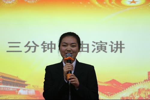接下来进行的是即兴演讲环节。本环节中,虽然抽到的辩题不同且准备时间紧促,但选手们的临场发挥却更是出色。我系王子鑫对“晚自习或早自习是否有意义”进行了掷地有声的演说;董振浩则对“人生处处是考场”进行了激情澎湃的论述;路凯凯由生活实际出发,对“如何看待高考”发出自己的声音;刘楚幽默风趣地演说了自己对于婚龄提前的看法;袁婷也围绕着“快餐式爱情是否可取”论题将自己的观点和看法娓娓道来。虽然题材各异,但每一种方式、每一次演说都展现出当代共青团员的精神风貌和思想文化内涵,值得每一个青年团员学习。