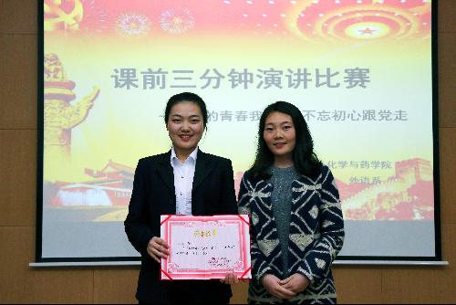 不忘初心,永跟党走。为进一步贯彻落实习近平总书记系列重要讲话精神,提高青年团员的思想政治素养,完善青年团员的思想政治理论体系,4月7日晚,由外语系与化药学院携手举办的以“我的青春我的梦,不忘初心跟党走”为主题的课前三分钟演讲比赛于绣山活动中心北报告厅圆满落幕。外语系团工委书记刘方、辅导员尹传松以及化药学院团工委书记肖启、辅导员翟龙飞受邀作为评委出席了本次比赛,两院的选手及学生代表齐聚一堂,共同享受了本次视听盛宴。