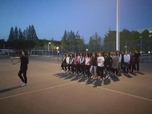 4月17日晚,夜色优美,惠风和畅。篮球场上除去往日运动的身影,又多了一道风景——外语系方阵队训练正井然有序地进行着。