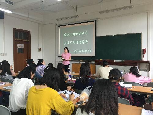 会议由班主任王立老师主持,她表示课堂作为第一学习场所,大家必须重视起来,严守课堂纪律,提高学习效率。同时她鼓励同学养成良好学习习惯,好好利用早读背诵朗读相关学习内容,不要白白浪费大好时光。其次老师强调了宿舍在大学生活中的重要性,树立良好舍风也是落实学风建设工作的一部分,号召同学们以优秀宿舍为榜样,学习友谊一起抓。最后,同学们一起讨论了班级现状与存在的问题。在制定严格班规以及自主监督方面,大家纷纷提出了自己的看法。