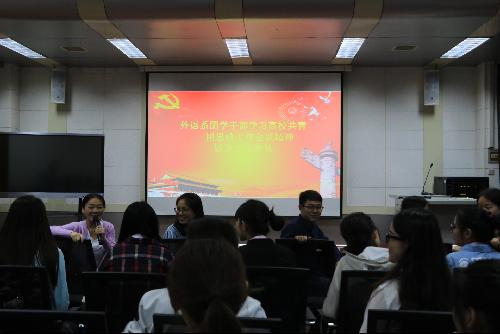 宣传部部长王勇只谈到:当前我们青年学生要不断强化思想政治引领,大力支持共青团改革,努力成长成才,为中华民族伟大复兴中国梦的实现不断注入青春力量。而且我们正站在“互联网+”的教育风口上,我们要充分利用现代传播技术手段,充分利用微博、微信、微视频、微电影等新媒体的技术优势,打破思想引领的时间和空间限制,让广大青年学生自觉感受到团组织的“实时存在”,实现多样化学习!以优异的成绩喜迎党的十九大的顺利召开。