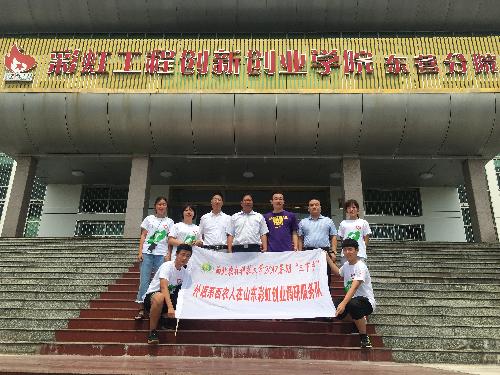 8月11日早外语系山东彩虹工程调研服务队来到了座落在东营科技职业学院的最终目的地――彩虹工程创新创业学院东营分院。东营科技职业学院王院长、徐院长以及彩虹工程双创学院张院长、王老师、悉心指导和积极配合,为我们调研的开展提供了资源和便利。