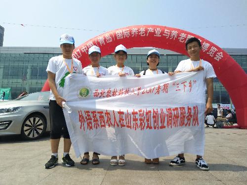 外语系西农人在山东彩虹工程调研服务队经过前一天下午的集合,8月12日早伴着炎炎烈日热情高涨地赶往青岛国际会展中心参加了第二届中国(青岛)国际养老产业与养老服务博览会。经过一番参观交流,队员们都对养老产业方面的创业项目有了一定的了解,比较直观地感受当前养老产业创新创业形势,并且见微知著,受益匪浅。
