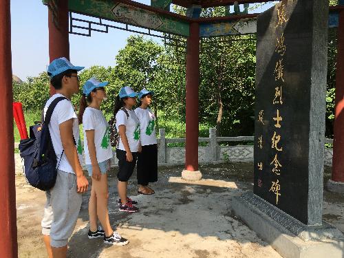 队员们认真严肃充满敬意的站在张鸿仪烈士的纪念碑面前,在纪念碑背面,了解这位将军戎马倥偬的一辈子。他义无反顾投入当年的“一二九”学生运动,他义无反顾加入鲁南人民抗日义勇总队,他义无反顾率领游击队在枪林弹雨中同日军厮杀,他,在一九四五年被日军包围的他,不屈不挠,英勇就义。值共产党成立九十周年之际,在烈士陵园为我们的烈士树碑、建亭,以慰英灵,以励后人。