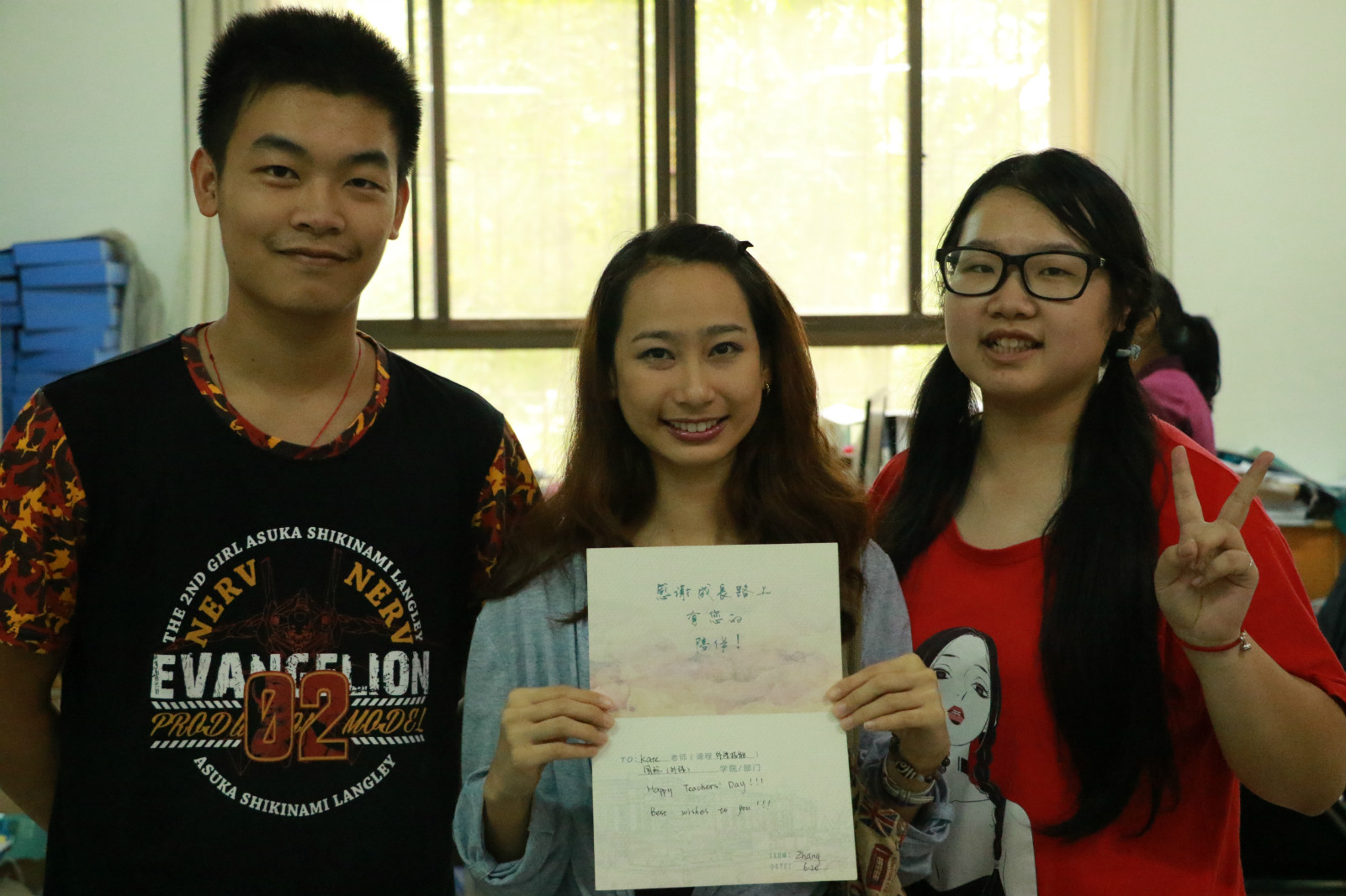 为传达学生们对老师的节日祝福,外语系团学干部自发到老师办公室送上贺卡、带上祝福,与老师合影,留下美好的回忆。面对学生的热情,老师们既惊喜又激动,语重心长地对同学们说:“谢谢大家,教书育人是老师的职责,希望同学们能够将这份对老师的感激之情化为今后学习的动力,将来学业有成、回报社会。”