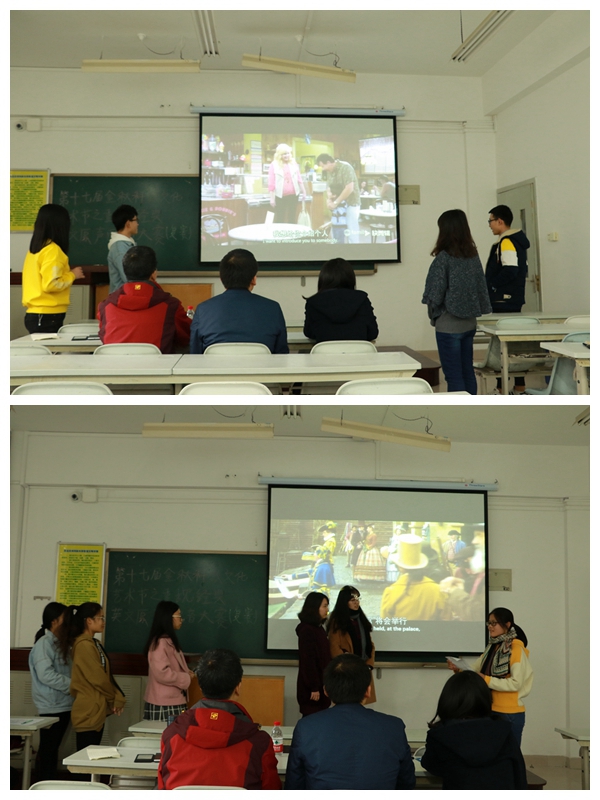 为提高同学们的英语口语表达能力,进一步激发同学们对英语的热爱,营造良好的英语学习氛围,丰富同学们课余文化生活。10月29日下午,由外语系主办的第十七届“重现经典”英文原声配音大赛复赛在8122、8123教室顺利举办。比赛邀请到外语系张鹏老师、王晶晶老师、王保健老师、罗建忠老师,团工委书记尹传松,辅导员刘方、李丹丹担任评委。在场的几十余位学生观看了本次比赛。