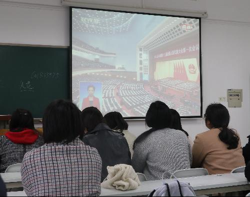 3月5日下午外语系团学干部在教室集中收看全国政协十三届一次会议以及十三届全国人大一次会议的直播,积极聚焦全国两会,学习并且贯彻落实全国两会的重要思想和核心精神。