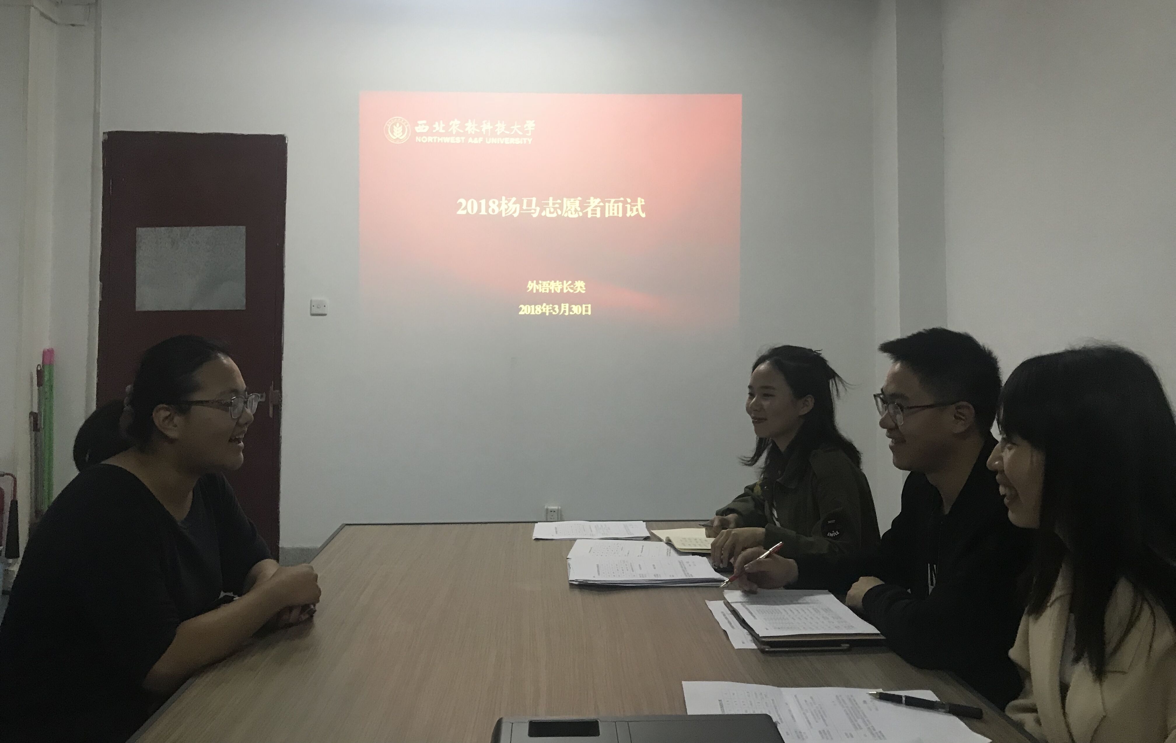 为响应农科城马拉松赛组委会、校团委的号召,积极迎接2018年杨凌国际马拉松比赛,选拔出工作能力强、水平出众的英语特长生作为志愿者,3月30日晚19:00,外语系于7505举办了马拉松志愿者面试活动。团工委书记尹传松、辅导员李丹丹出席本次活动。