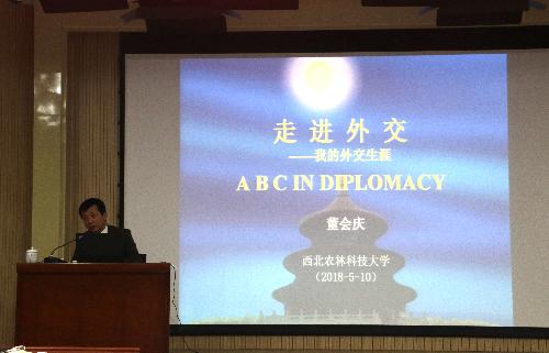 我系于5月10日晚7:30有幸请到董会庆教授在外语系二层报告厅开展一场传授宝贵外交经验的学术讲座。董会庆教授于1999年以全国第一名的成绩通过国家外交部国家公务员考试,并于2001年至2005年出任中国驻荷兰大使馆外交官,致力于教育与文化方面的沟通和交流工作。在从事外交的生涯中,董会庆教授曾多次在国内外接受国家高级政府官员的亲切会见。董会庆教授于2012年暂时结束外交生涯后返校,继续从事教育事业的研究。董教授现在为我系硕士研究生导师;现任全国高等农业院校外语教学研究会常任理事;陕西省高等学校大学外语教学研究会副会长等学术职务。