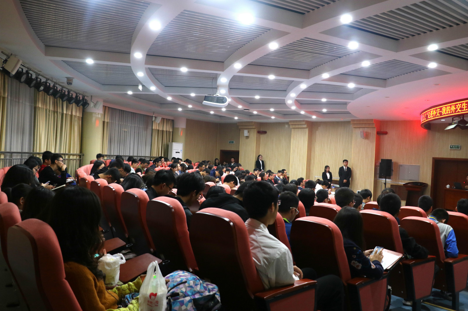 在讲座之中,教授向我们详细介绍了中美外交官选拔的条件以及测试流程。教授反复强调:只要有成为外交官初心,在座的所有同学都能有一个成为外交官的美好未来。教授同样分享了自己很多宝贵的外交生涯中的亲身经历,尤其是曾参与了爱尔兰高级政府官员与我国高级政府官员的外交会晤。在讲座之中突出强调的是对信息的整体处理能力。外交官在具备完美的语言以及政治知识的基础上,还需具备对有效信息的筛选、整合以及最后的分析得出结论的能力。
