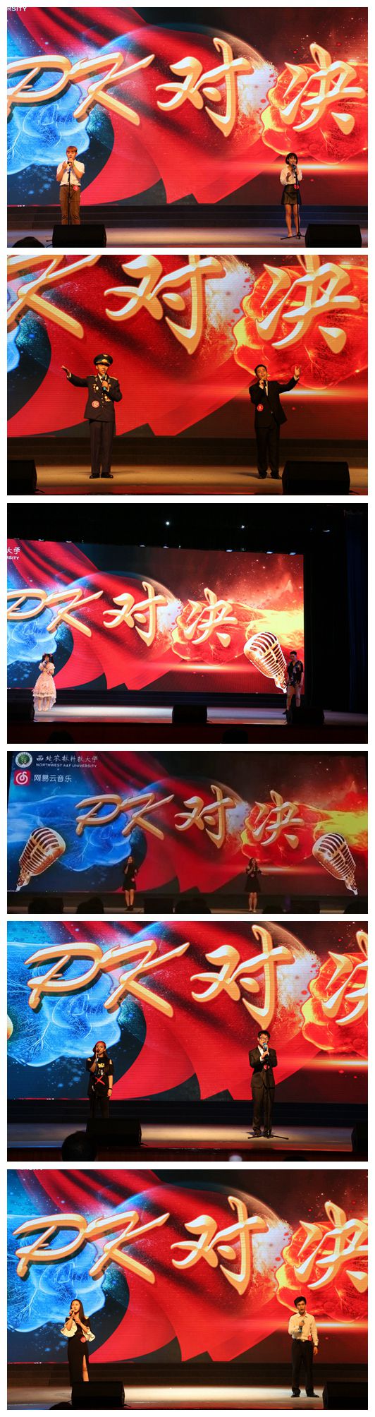 在“单人演唱”环节中,选手按照抽签顺序依次上台演唱。本环节以一首深沉绵长的《Feeling Good》徐徐展开。其中,11号选手饶馨茹带来的《Just One Last Dance》,饱满而深情的歌声缓缓倾泻,令在场观众身临其境,为之回味。比赛现场有《Palette》的清新明快,也有《Never Enough》的动情诉说。12名选手风格迥异,他们都用自己或明亮或低沉的嗓音展现了自己的风采,唱响西农夜晚,全场欢呼不断。随后的PK环节中,选手们分为两人一组,共同演唱同一首歌曲,7号选手朱丽和9号选手修艺文哲以独特的嗓音和成熟的歌曲驾驭能力,将一首《Can’t Take My Eyes off You》 演绎出独特的风格。随后登台的选手也都各具魅力,6号选手崔艺蒙与10号选手李增坤配合演绎《Eyes,Nose,Lips》,两人独特的嗓音相互交融,又各有特色,撞出了不一样的火花。在六组选手的精彩演唱后,大学生艺术团合唱团带来了经典名曲《雪绒花》,奏响了决赛的尾声。