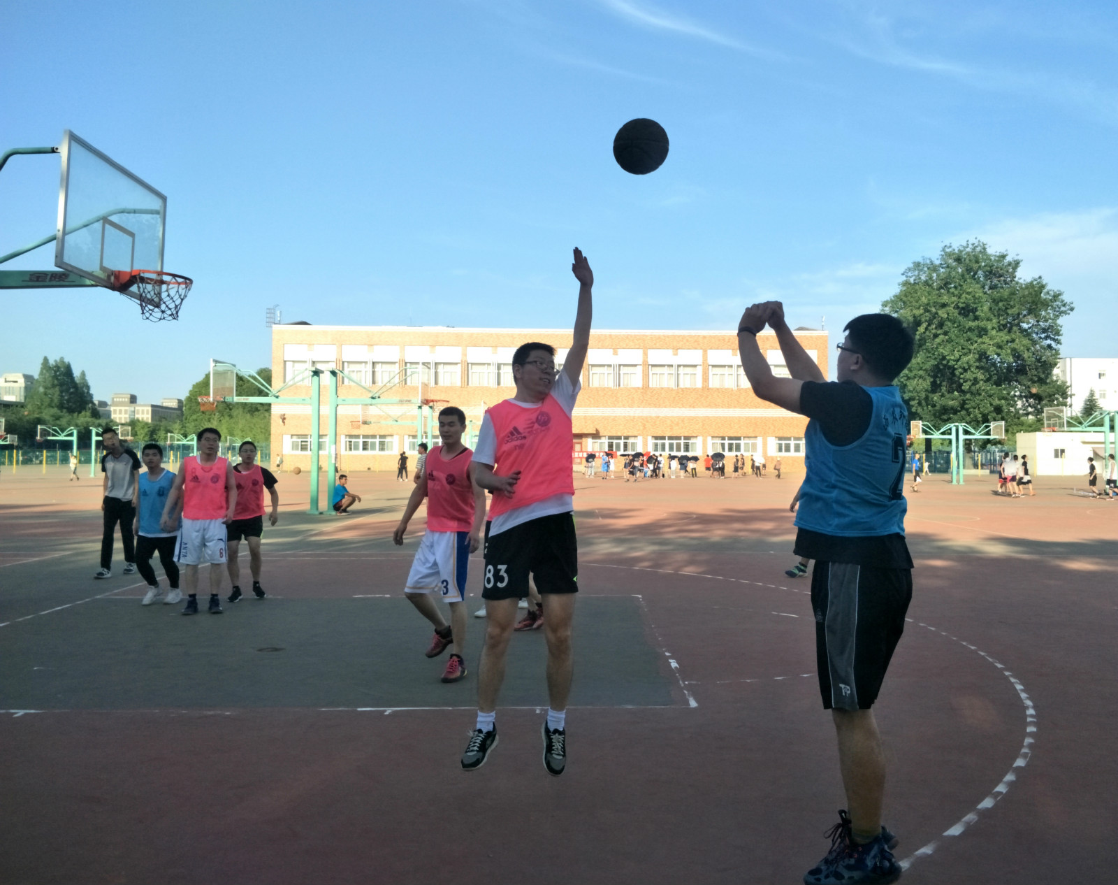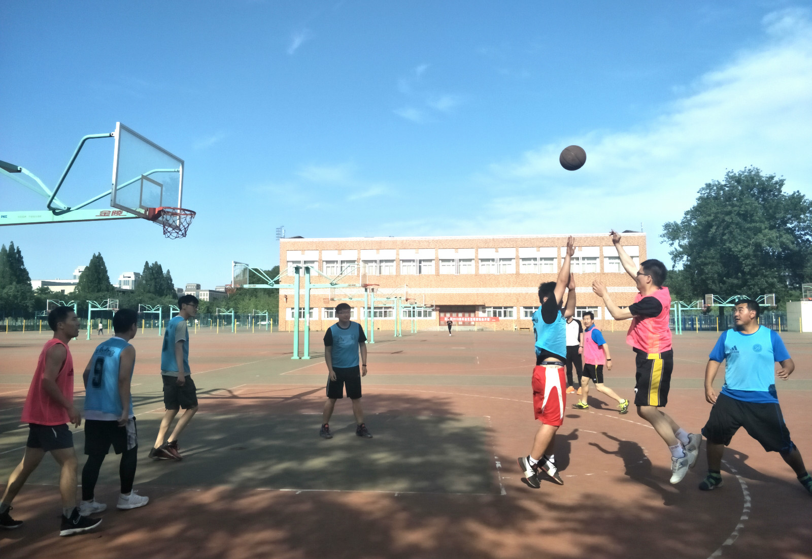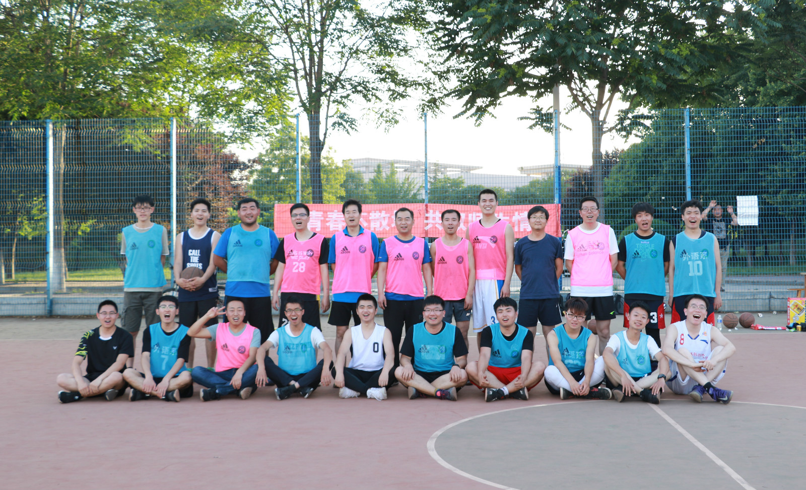 六月流火,外语系毕业生们即将踏上新征程。在这个依依不舍的季节,为欢送毕业生,外语系于6月4日下午五点在篮球场举行了毕业师生篮球赛。外语系党委书记李万强加入比赛队伍。