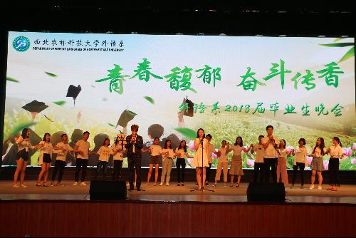 在别离之际,外语系为每位即将毕业的学子准备了西农记忆的礼物,很多未能到场的老师也通过视频的形式为毕业生送来祝福。“你们都是我生命列车中的伴侣”、“有空常回来看看,看看你们曾经学习生活过的校园,也来看看我”……一字一句皆是深情款款。中场互动环节,即将毕业的学子们一个个站起来,倾吐着对老师与学校的感激之情,更有张鹏老师现场清唱一首《沧海一声笑》满足同学们的要求,表现了师生间深厚的情谊。