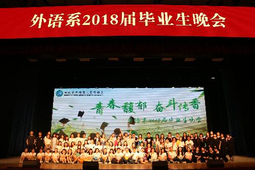 6月8日晚,外语系“青春馥郁,奋斗传香”2018届毕业生晚会在北绣山活动中心顺利举办。外语系党委副书记滕艳萍、毕业班班主任、外语系部分教师、辅导员以及大一大四全体学生共同观看精彩演出。
