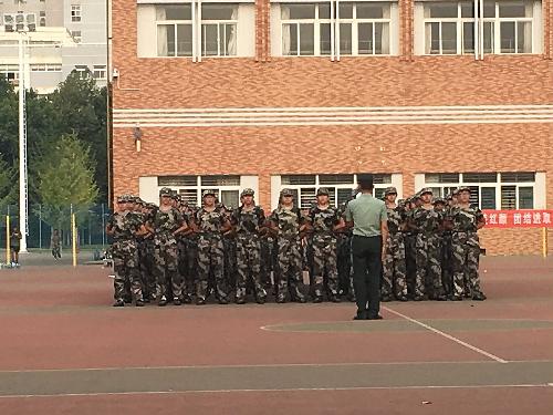 军姿挺拔站如松,口号嘹亮气如虹,外语学子们以最饱满的状态对待着每一个训练:立正、跨立、敬礼、礼毕,略显枯燥乏味的队列训练重复单一,但却不见任何学子有所懈怠。为了鼓舞新生训练斗志,二连、七连集思广益确定了连队的口号,口号的融入极大的激发了学子们训练的热情,使同学们更加认真的投入到训练中。下午4时,军训团于篮球场开展了第一次会操,5个营共选拔出15支连队参与,女生七连有幸加入此列。会操时,在领队教官的指挥下15支队伍依次进入场地,围绕篮球场列队,随后依次展演。七连于第6次序出场,位置站定后,七连同学们喊出的口号气贯长虹,有着巾帼不让须眉之势,她们迈着矫健的步伐入场,步步铿锵有力,稍息、立正、敬礼、礼毕、左右对正看齐,一连串的动作展示整齐划一,她们成为训练场上最靓丽的风景线。加油7连!戒骄戒躁!继续努力!