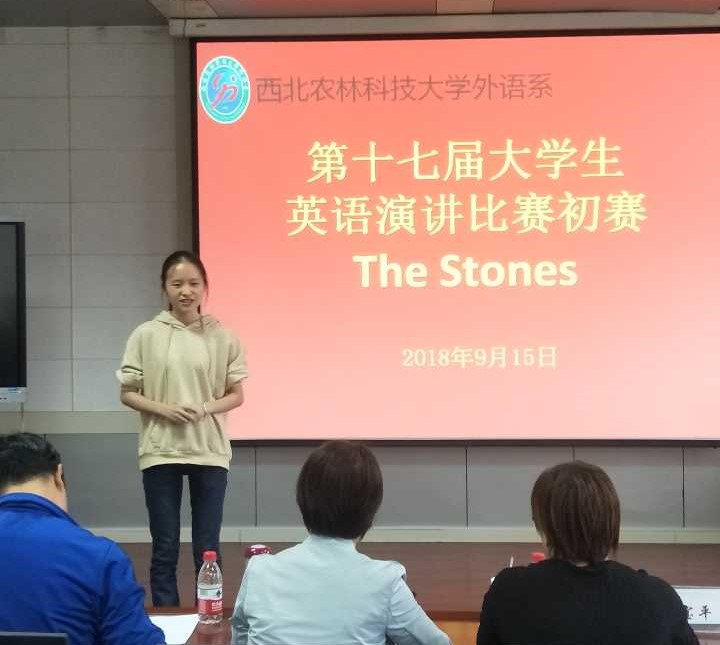 本次外研社杯以“The Stones”作为主题,参赛选手自定副标题进行3分钟时间的演讲。外语系学子们各抒己见,各有千秋。不同的思想相互碰撞,可谓是百花齐放,令人印象深刻。安雨琪同学声情并茂的讲述了自己和父母间令人感动的故事,stones对于她而言,是如山一样沉甸甸的父母的爱。她赋予了原本坚硬冰冷的石头诚挚的情感。贾文韵同学则讲述了关于自己去世爷爷的故事,她提到生死都是生活的一部分,需要人们学会接受,学会欣赏生命的美丽。在困难面前,人们不应退缩、躲避,而应勇于面对,互相帮助以渡过难关。她讲述的人生哲理走进了在场每一个同学的心中。马凤岐同学从我们平凡大众的角度阐述了自己对stones的独到见解。通过讲述自己学习西班牙语以及乔布斯、爱因斯坦和中国凤阳小岗村的例子,赋予了stones实干家的精神,认为成功所需要的重要因素之一便是实践。