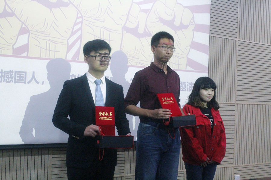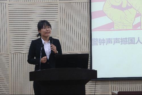 居安思危,警钟长鸣,来自外语系的李婷同学说道:“虽然九一八事件已经成为了历史,但我们还不能掉以轻心,世界舞台上的恐怖势力仍在蠢蠢欲动。为护我家园,壮我中华,今日的中国还需要我们更加努力地建设。”评委们认真聆听、细致分析,从多方面考察选手们的参赛表现。最终,李子艺获得一等奖;周格格、马闯、获得二等奖;井梦源、刘颢、马明亮获得三等奖;独雅宁、李婷、贾辰琳等同学获得优秀奖。