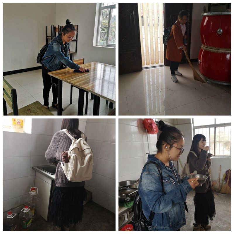 志愿者们首先打扫了餐厅的卫生,整理了桌椅。再出去考察周围布局,等待餐厅阿姨的来临,在等待张阿姨的过程中,志愿者们积极与老人们沟通,陪他们聊天。在饭菜烹饪完毕,志愿者们帮助张阿姨盛饭并且给老人端发饭菜,在这个过程中,老人们显露出了激动情绪,当每一份饭菜传递到老人们手里,爱心与温暖也传递了过去。吃饭时间结束后,志愿者们又帮助张阿姨洗漱碗筷,整理餐厅内务。