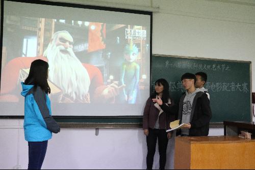 为提高同学们的英语口语表达能力,进一步激发同学们对英语学习的兴趣、营造良好的英语学习的氛围。 10月21日下午,由校团委主办、外语系承办的第十八届“逐梦新征程,青春砥砺行”英文原声电影配音大赛初赛在北校区3号教学楼顺利举办。本次比赛邀请到了配音大赛一等奖获得者马凤岐、马雨初,学生会主席王子鑫等担任评委。在场的几十余位学生观看了本次比赛。