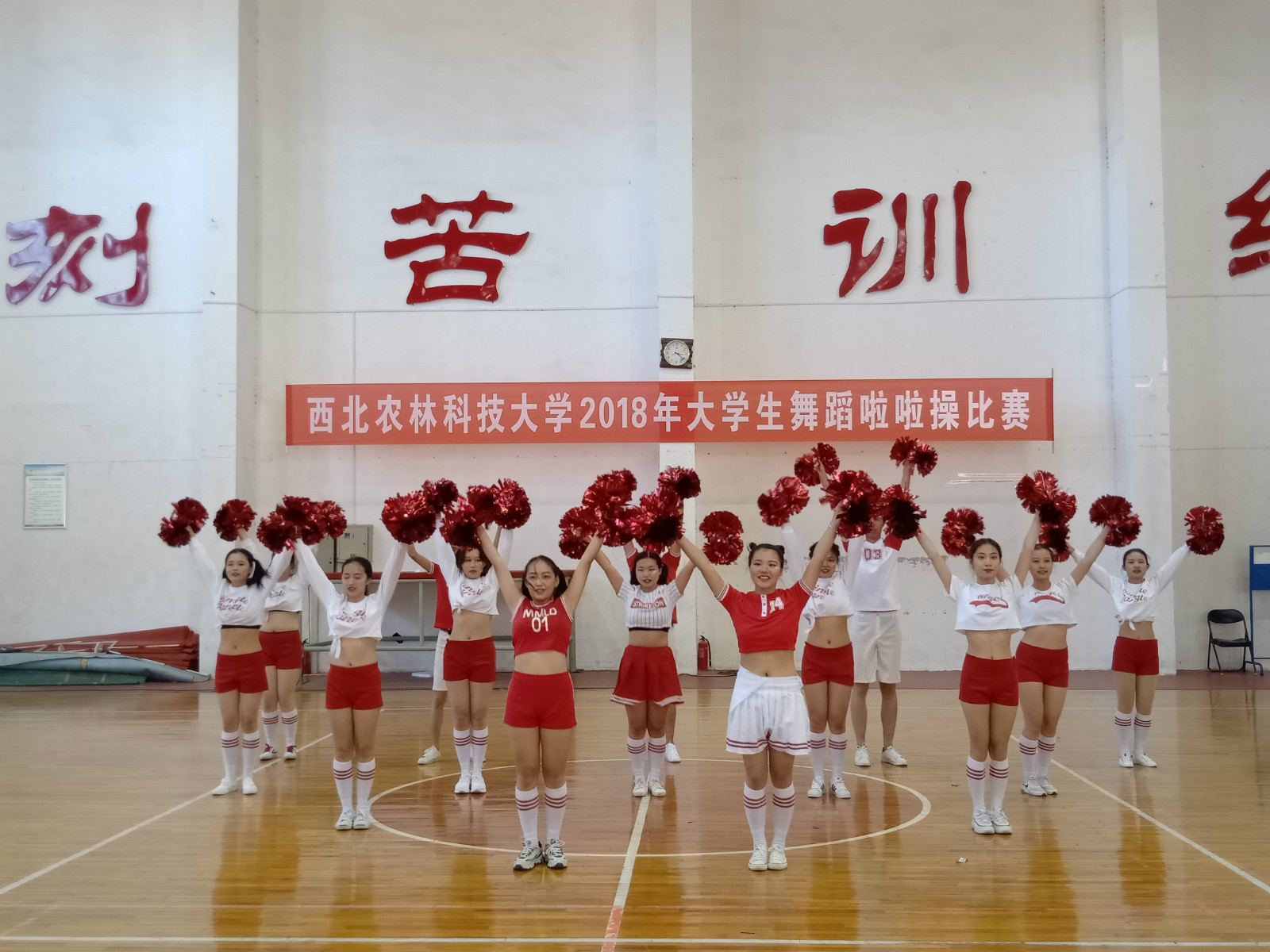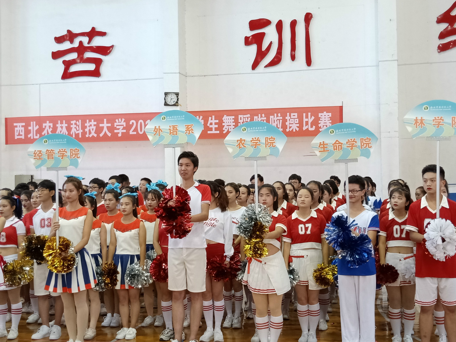 为丰富学生校园文化生活,增强学生体质,进一步推进校园文化建设,10月28日下午,外语系代表队参加了在篮球馆举行的 “西北农林科技大学2018年大学生舞蹈啦啦操比赛”。