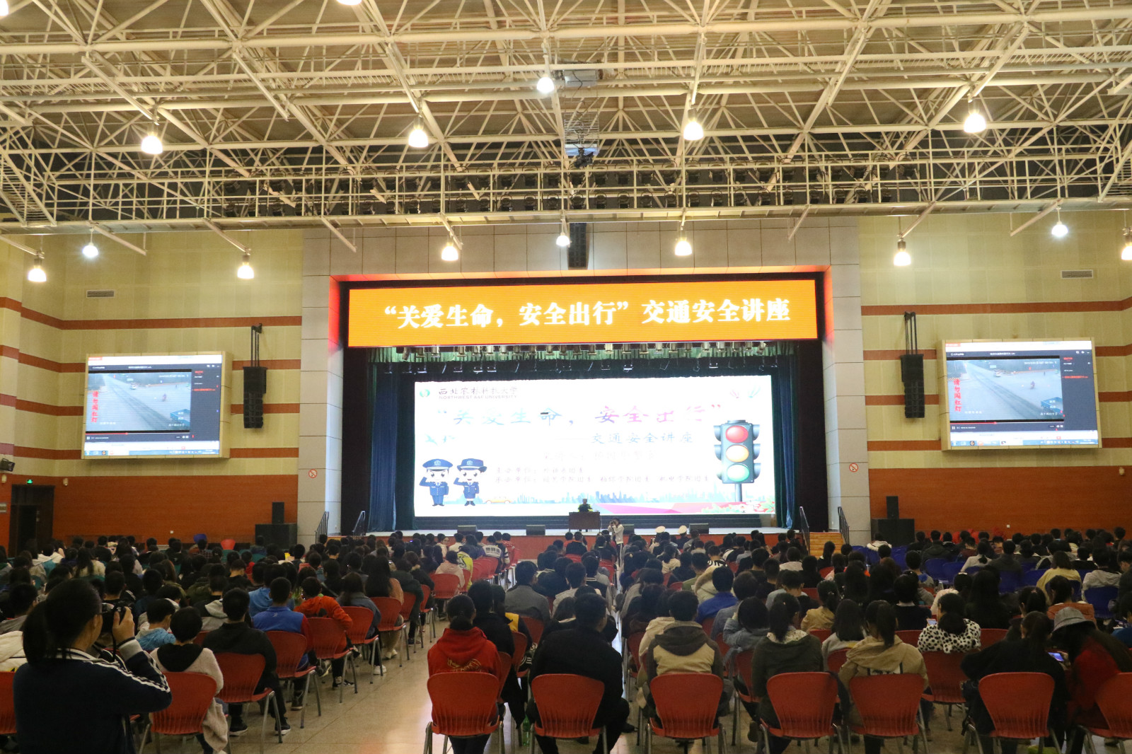 11月3日晚7:30,由外语系分团委主办,植保、机电、园艺学院分团委协办的题为“关爱生命,安全出行”的交通安全讲座在北绣大厅举办。本次讲座主讲人是杨凌区交警二大队的杨国华警官,讲座旨在提高学生交通安全意识,规范安全出行方式,面向西农学生普及交通安全知识,