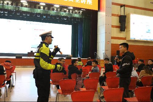 在互动环节中,同学们积极提问。杨警官针对同学们的问题依次耐心地做出相应解答,解决了同学们交通方面存在的知识盲点、盲区。对于自己在交通方面存在的问题,追根问底,充分体现了我校学子对于交通安全的重视。