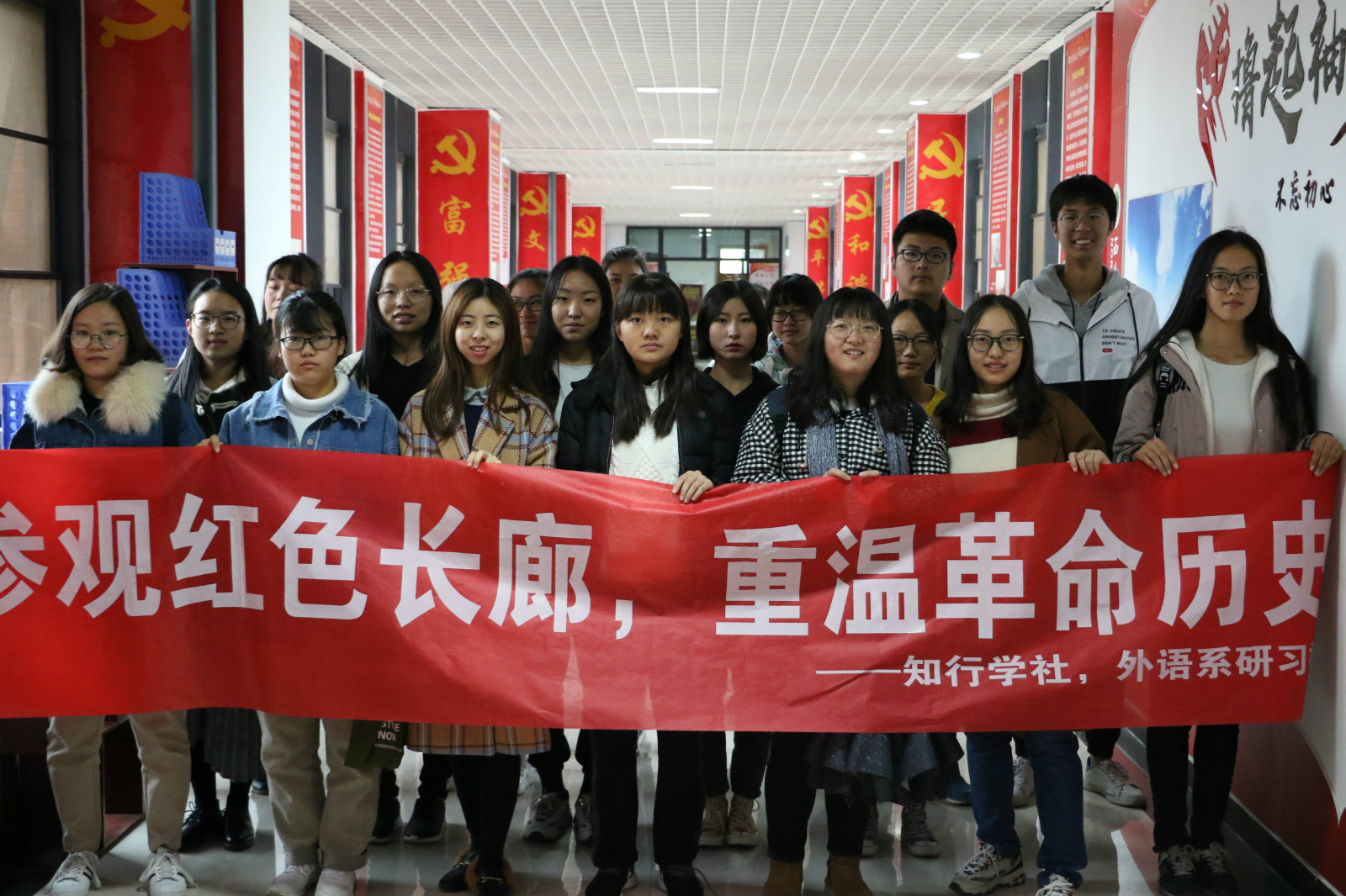 在“红色长廊”中,同学们看到了习近平总书记提出的“撸起袖子加油干”的口号以及入党宣言:“我志愿加入中国共产党,拥护党的纲领,遵守党的章程,履行党员义务,执行党的决定,严守党的纪律,保守党的秘密,对党忠诚,积极工作,为共产主义奋斗终身,随时准备为党和人民牺牲一切,永不叛党”的铮铮誓言给同学们留下了深刻的印象。