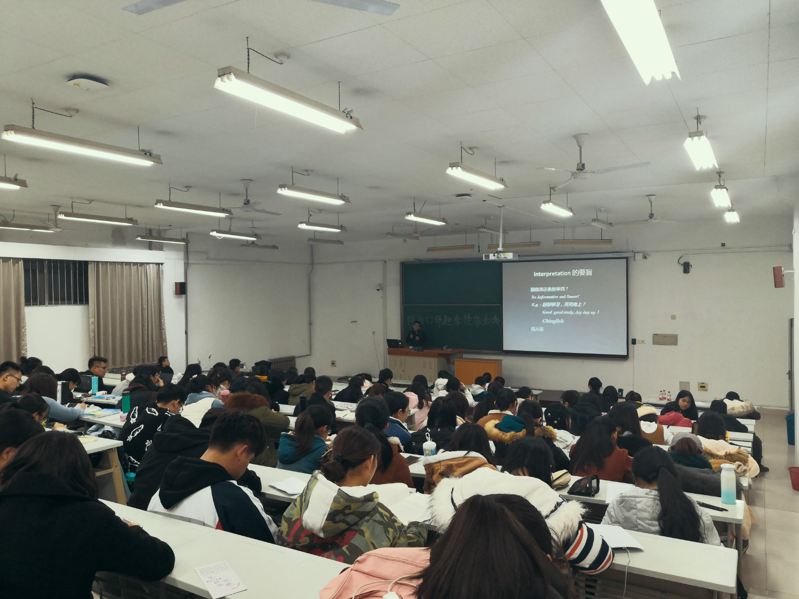 为让同学们更好地了解同传口译,11月27日晚七点半,外语系同传口译趣味性报告会在8T01台阶教室顺利举行。本次报告会邀请了道听途说语言工作室高级讲师、资深译员王雷老师,为同学们详细介绍了同传口译这份工作。