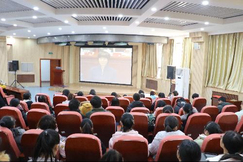 2018年12月18日,西北农林科技大学外语系全系师生在外语系二楼报告厅收看庆祝改革开放四十周年大会,共同回首我国改革开放、砥砺前行的四十年。
