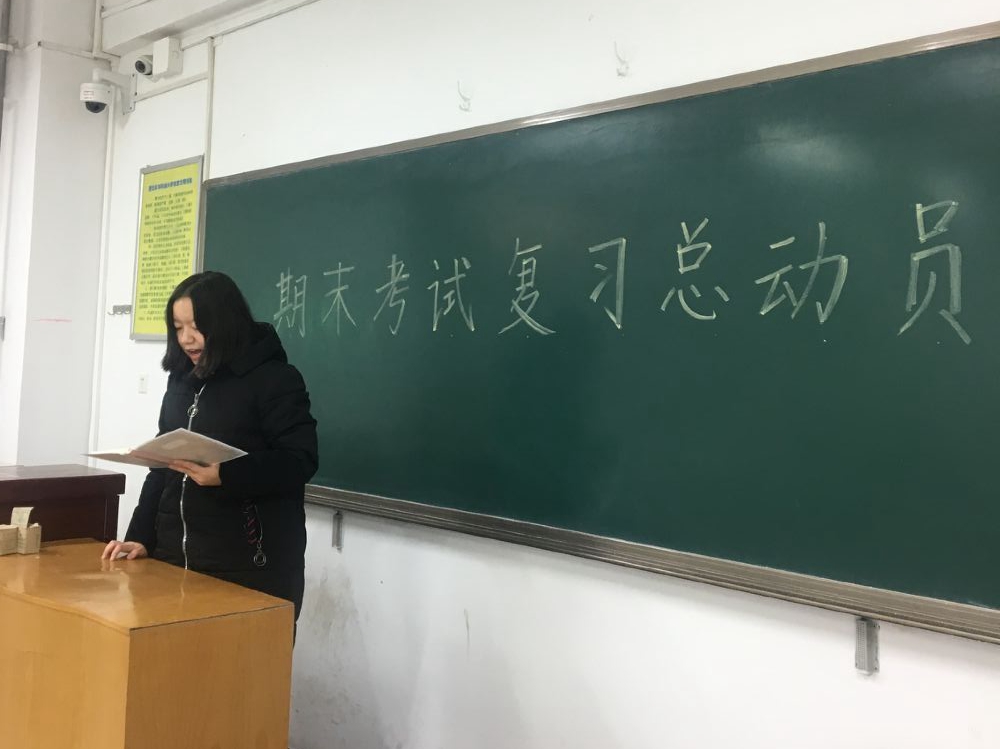 12月25日下午,英语1801班期末考试复习总动员主题班会在八教104教室顺利举行。班主任马甜老师参加班会,并为同学们加油鼓劲。