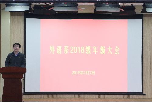 3月7日晚,外语系在系二层报告厅召开了2018级学风建设主题年级大会,大会由辅导员张琦主持,全体2018级学生参加了大会。此次大会旨在让2018级学生走出“假期综合征”困扰,以饱满的精神状态和昂扬的斗志投入到新学期的学习中,为新学期的学风建设工作打下基础。