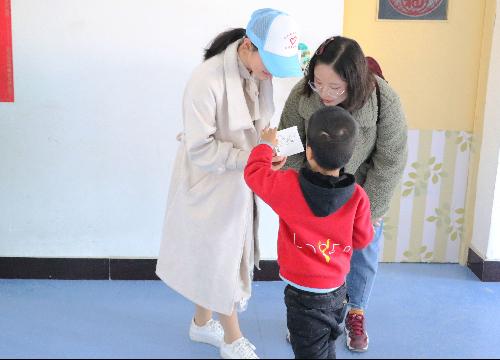 到达福利院后,在工作人员的带领下,志愿者们先去看望了“麒麒之家”的孩子们。志愿者们为孩子们带去了水果与英语教学卡片,工作人员对志愿者们表示感谢。对于志愿者们的到来,孩子们非常兴奋。志愿者们分成多个小组,为孩子们辅导作业,教唱英语歌曲,陪孩子们做游戏。孩子们的欢声笑语、灿烂笑颜深深刻入志愿者们的心中。