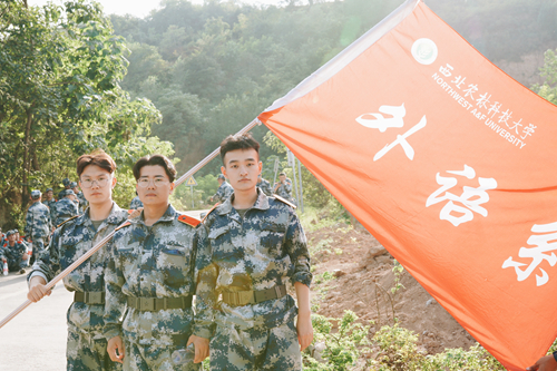 午休过后,身着统一迷彩作训服的新生们于北校田径场集合,军姿挺拔,精神抖擞,整装待发。“一二一,一二一!”嘹亮的号令声划破午后的静谧,温暖的阳光洒下细碎的金点,外语系新生踏着整齐有序的步伐沿既定路线行进。拉练途中,鲜红的旗帜迎风飘扬,嘹亮的军歌在山间回响,坚定的步伐、整洁的军容、相互的鼓励、执着的坚持诠释了外语系学子们昂扬向上的精神风貌。全体新生意气风发,充满“雄关漫道真如铁”的坚定信心和“万人操弓,共射一招”的团结精神。“太华生长松,亭亭凌霜雪。”一路上,白云融湖,碧枝连空,绿荫漫山,摄人心魄的美景闪耀着大家的汗水显得更加明媚,新生们以顽强的意志高歌猛进,一人不落地完成了全程拉练。