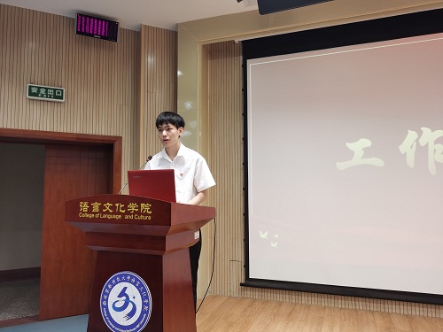 大会在庄严的国歌中拉开了序幕,由团委副书记李春雨宣读了换届选举办法,并对大会流程进行了简要介绍。随后,各位学生会干部候选者结合个人简历,依次从工作总结、竞选优势、工作规划等方面进行了竞选演讲。竞选者们意气风发、斗志昂扬,充分展现了语言文化学院学子积极向上的精神面貌与实干进取的责任担当。