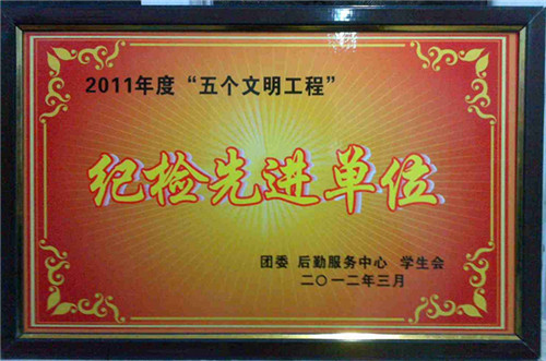 近日,我系团工委在我校2011年度“五个文明工程”表彰大会中荣获“纪检先进单位”称号。