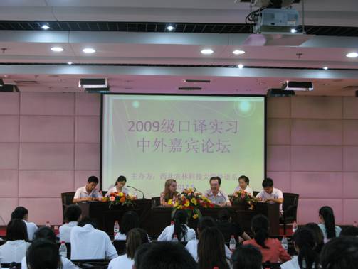 2012年6月26-27日,2009级英语专业学生口译实习之中外嘉宾论坛分别在南校区国际交流中心208,207会议室举行。