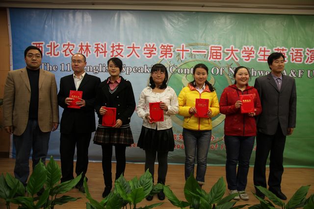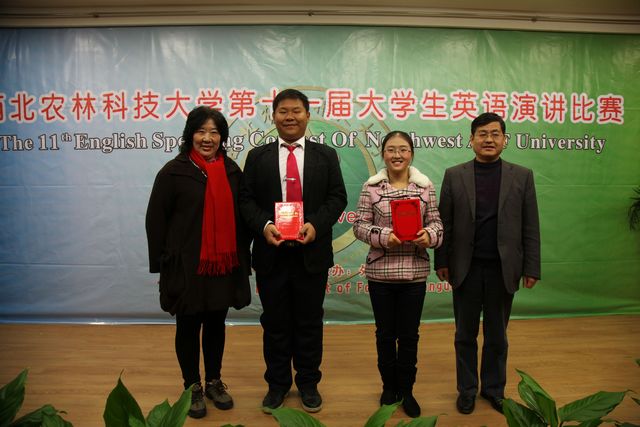演讲赛分为命题演讲、即兴演讲和回答问题3个环节,在两个小时的角逐中,12名选手在舞台上尽情挥洒才华,精彩的演讲不时博得台下同学的阵阵掌声。经过激烈角逐,外语系杨丹妮同学荣获特等奖,人文学院唐暨鑫、资环学院张悦2位同学获得一等奖,外语系阮书翎、人文学院刘洪波、食品学院张月、经管学院王恒等4位同学获得二等奖,农学院何雨洁、创新学院王蔚、生命学院张艳军、理学院刘莉、葡萄酒学院王陶等5位同学获得三等奖。