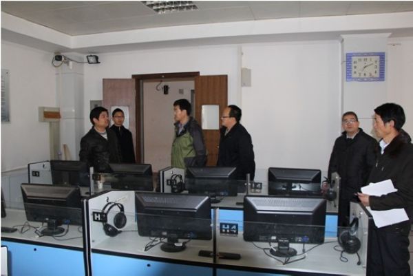 在听取了系副主任田志强对我系实验室实验室环境及安全等工作进行了整体介绍、语言教学实验中心主任王昕的具体工作汇报之后,胡处长一行对语言教学实验中心实地考察,并对我系实验室工作进行了实验人员带病坚持工作表示赞赏并对实验室对全校学生免费对外开放工作做出高度评价,认为这项工作对提高设备共享率,充分发挥设备潜力;提高我校学生英语视听说能力和四、六级英语过级率有着极大的促进作用,同时对下一步实验室工作的开展提出了建设性的指导意见。