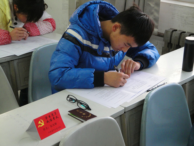 全天考试中,我系学生党员将印着党徽和“学生党员 诚信考试”字样的考试牌摆放在座位的显眼位置,时刻接受他人监督和自我警醒,自觉遵守考试纪律,诚信考试,杜绝舞弊。整场考试秩序井然,无违纪行为发生,学生党员以他们的实际行动实践了作表率、带好头的承诺,真正实现了学生党员受教育、挂牌活动出实效、学风建设得推进。