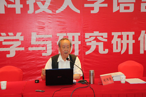6月26日上午,北京外国语大学中国外语教育研究中心顾问刘润清教授作了题为《外语教育理念与学习策略》的报告。刘教授从外语教育研究总趋势、外语教育教学的几条原则以及外语教育教学策略几个方面深入浅出地讲授了当今国内外语教学的趋势、教师在外语教学应遵循的几大原则以及外语学习策略等等。